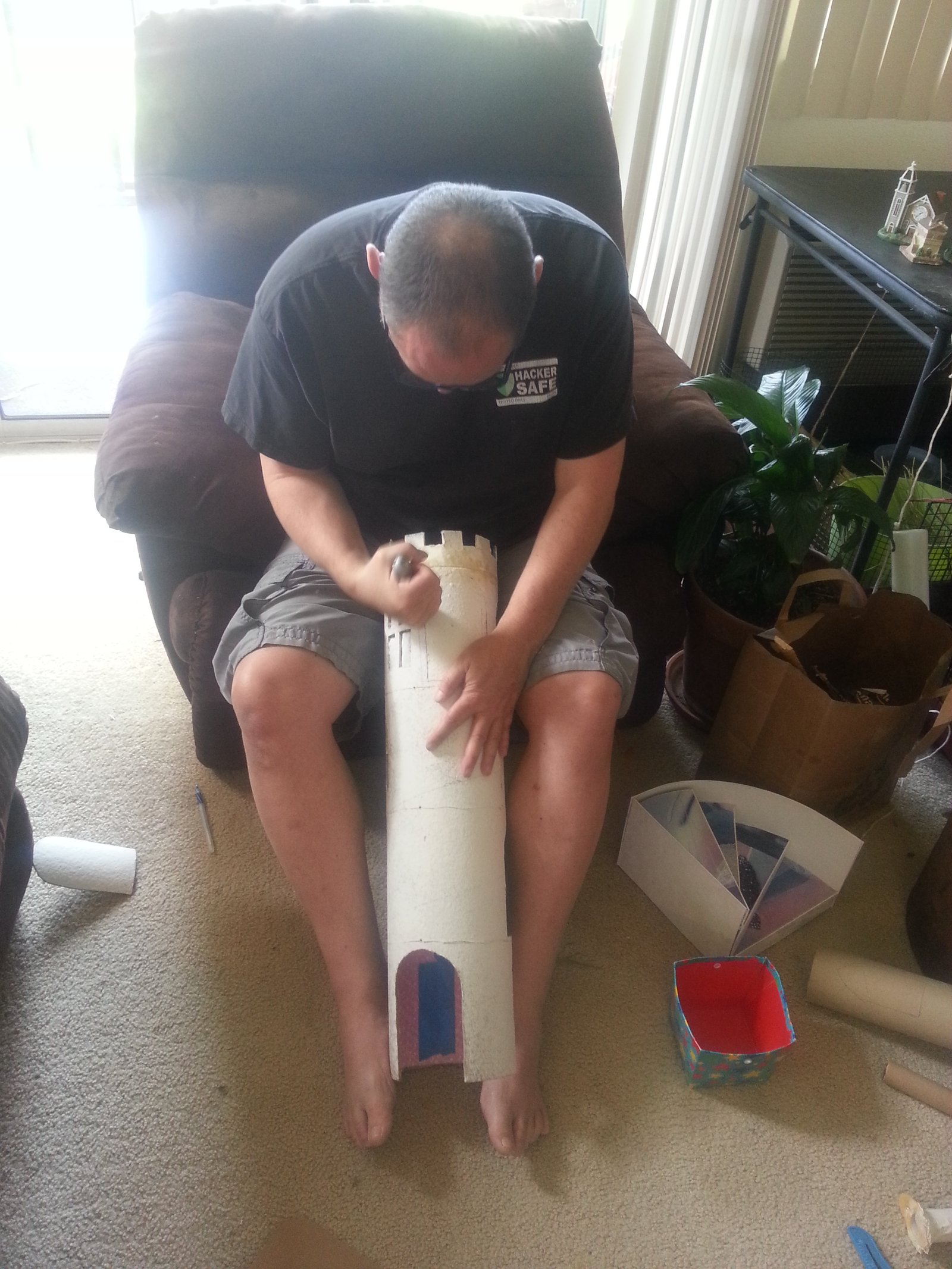I had kept this big tube around for a long time for no particular reason. It was perfect for this castle.